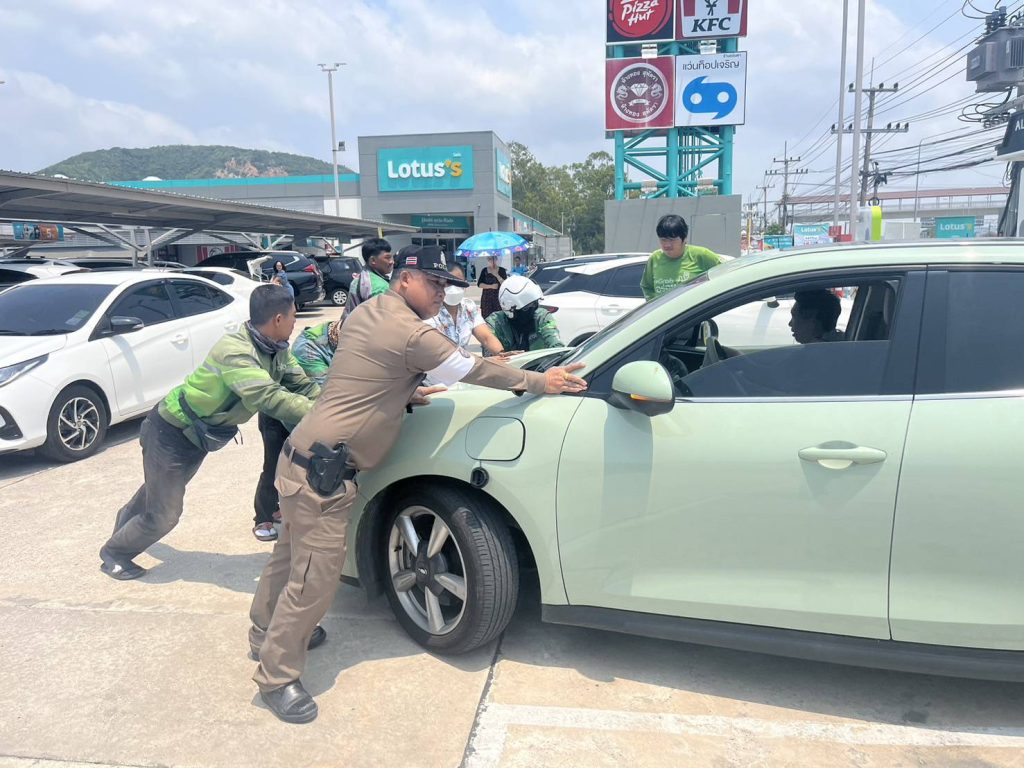 มื่อวันที่ 13 เมษายน 2567 เวลา 12.00 น. สายตรวจจราจร สภ.พลูตาหลวง ด.ต.โสพล ต่อติด ผบ.หมู่ (จร.)ฯ ขณะปฏิบัติหน้าที่ออกตรวจป้องกันเหตุในพื้นที่ พบประชาชนขอความช่วยเหลือ บริเวณลานจอดรถภายในห้างสรรพสินค้าเทสโก้โลตัส สาขาอู่ตะเภา ถนน 331 ม. 1 ต.พลูตาหลวงฯ เนื่องจาก รถยนต์ (รถไไฟฟ้า) สตาร์ทไม่ติด จึงนำรถไปจอดในที่ร่ม และเปลี่ยนแบตเตอรี่ (สำรอง) รถสตาร์ทติด สามารถเดินทางต่อไปได้
