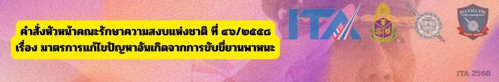 - Order of the Head of the National Council for Peace and Order No. 46/2558 Subject: Measures to resolve problems arising from driving vehicles